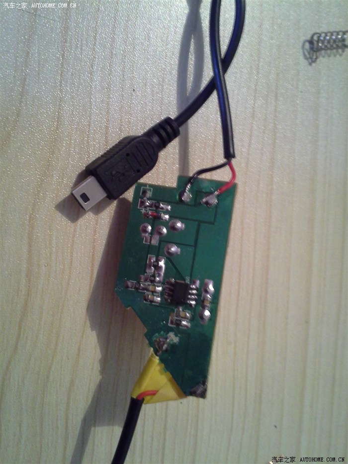 拆开行车记录仪点烟器口取电电源变压器就这么点点,用胶带包好后可以藏到眼镜盒的后面,注意一定要包好,以免在将来行车时颠簸磨损露电,引起火灾。用万用表量照明灯后正负极线,可以从头顶灯上取电省得去下面点烟器去取电了,不过此处取电可是常供电的哦。