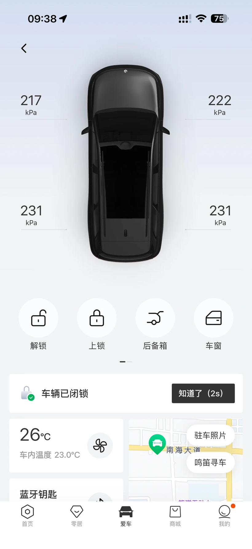 想起冬天温度低胎压容易降,打开 APP 一看:前胎才 217、222kPa,确实低得离谱。赶紧找了充气泵,打到售后说的冬季建议胎压 250 左右。