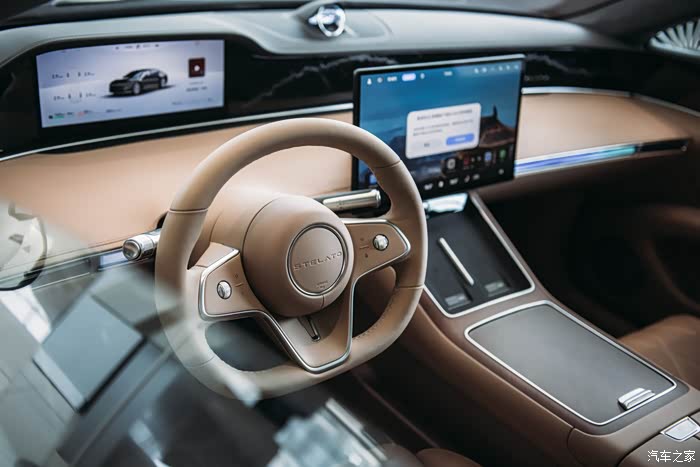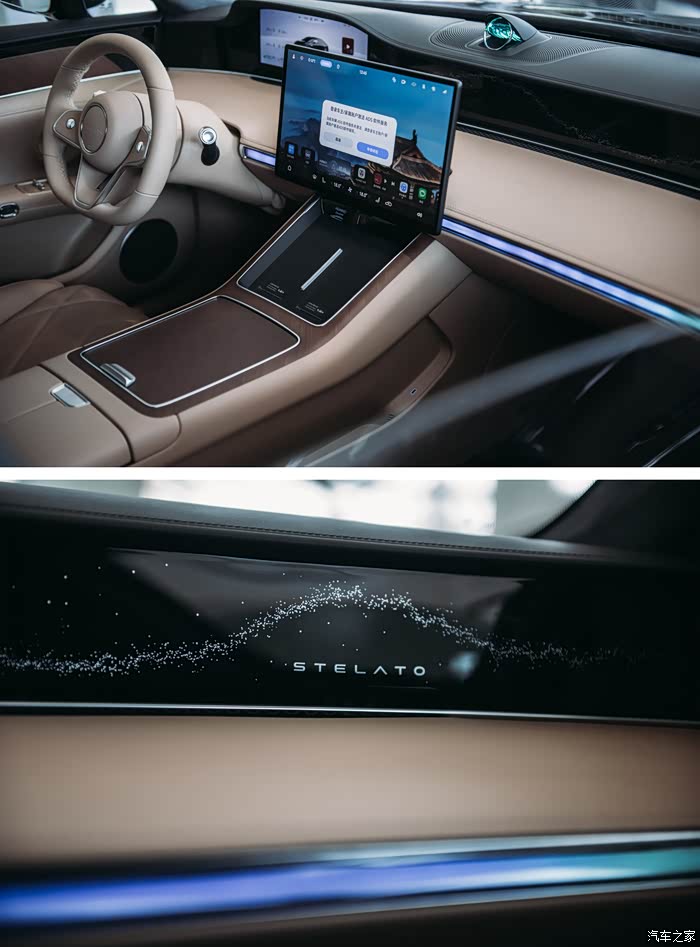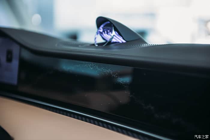 双露台设计,让中控更有层次感,贯穿中控的灯条和上面的星河画卷饰板,贴合寰宇座舱主题,展现宇宙浩瀚。