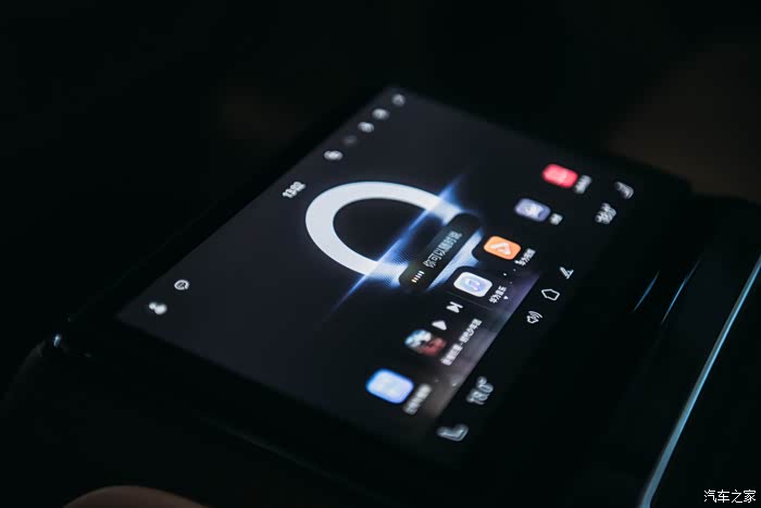 后排中央扶手处,置放了冷暖冰箱和一块9英寸的液晶屏,这块屏幕可与车内其它屏幕联动,控制座椅、空调、巨幕等。