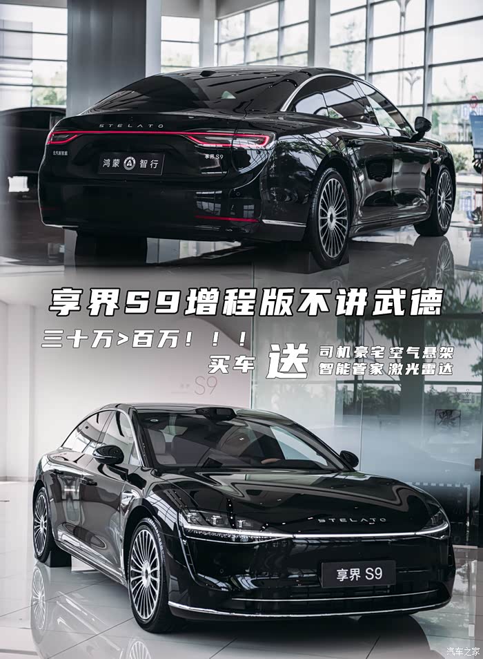 三十万的价格,百万级的体验,享界S9增程版,以雷霆万钧之势,重塑豪车价值体系,并为后来者创建了模版:三十万买到的,不只是一辆车,还有智能管家、司机、豪宅、安全堡垒。