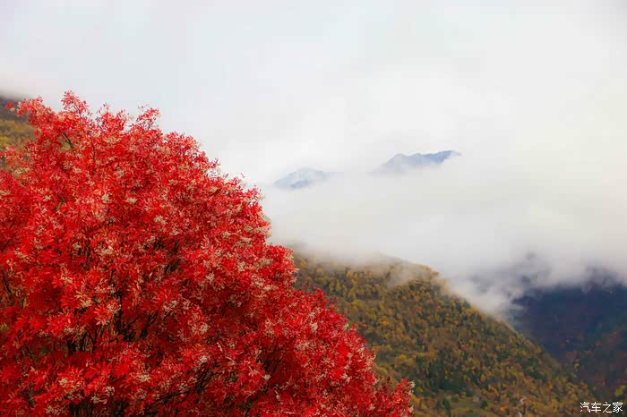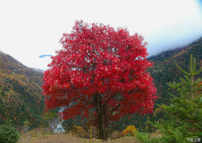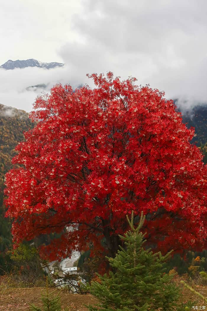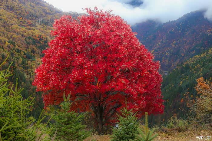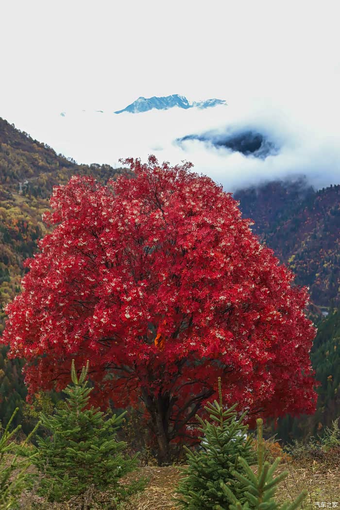听网友说,奶子沟边有一个山村,有一颗神仙树,很漂亮,纯红,我们即刻前往,上山路很窄,错车都不方便,很多游客也是慕名而去,川A最多,哈哈,看到以后,果然大气壮观!