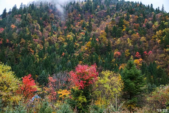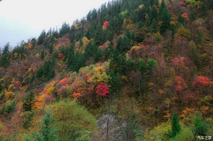 快到黑水县城就开始进入彩色的世界,可惜到了黑水就下雨,还下冰雹,找到客栈以后,冒雨前往八十里彩林的奶子沟,奶子沟不要门票,顺着一条河沟一直走,两边都是彩林,非常壮观,真是天公不作美,很多景色都没有拍到!不过沿途的风景真是很美!