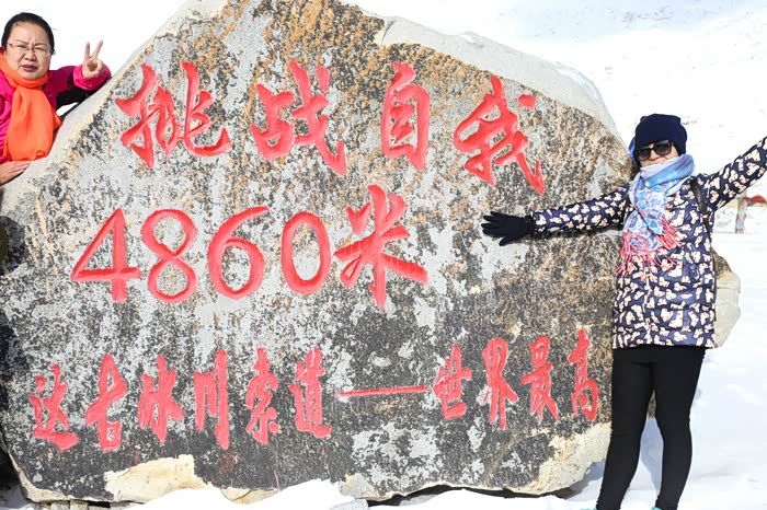 经过30公里的观光车以后,就开始世界上最高海拔的索道,上顶4860米的雪山之巅,这里建议小朋友和老年人以及心脏不好的朋友不要上去,下索道后马上有反应,头晕想吐,不过还在可控范围,几杯热水喝下去好了很多,山上也有氧气卖,30元**,还是要靠自身的素质,不过要到山顶才能领略到山下看不到的风景,很值得的一次登顶!