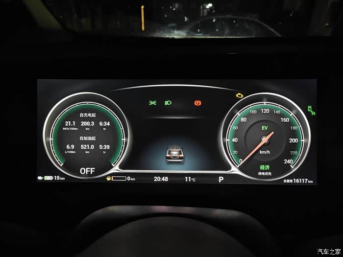 再算一算费用吧,43度的电池,用了92%,实际耗电39.56度,我都是用家用电充电,一度电0.53元,就是21元;油按照43升,每升8.27元,就是356元,一共是377元,721公里,每公里折合0.52元,这个数肯定是比油车省,在混动新能源MPV里应该还可以吧。