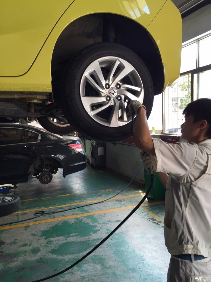 师傅帮我检测胎压。顺便充气平衡,话说我忘记了让他帮我全部换氮气了。