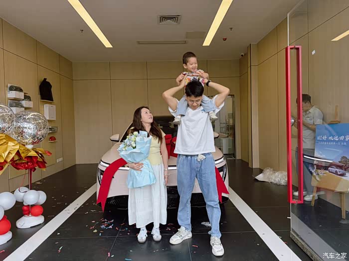 到了提车那天,带上老婆小孩直接去到店里,因为手续我已经提前都办好了嘛,所以速度很快,一个简短的交车仪式和工作人员简单的交接了一下就开车回家了。提回家那天我都没吃晚饭,因为我在忙着装脚垫,贴膜,研究车机的各种设置,老婆都说我魂都要被这台车勾走了