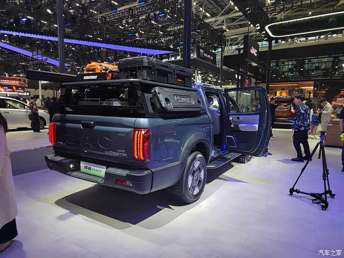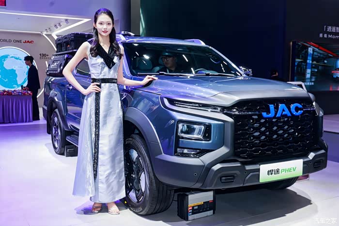 从介绍中,全球第一款全球首款动力强劲达1000扭的电混动皮卡悍途-PHEV, 外形硬核又舒适,它配置31.2度电池、77L的大油箱,续航上称可达1000KM,并有15KW对外放电,外野作业休闲更便捷。拥有五星安全、超级电混、全域场景等核心价值,悍途-PHEV更搭载了天通卫星移动通信系统,在崇山峻岭的山区野外作业通信更快更方便。