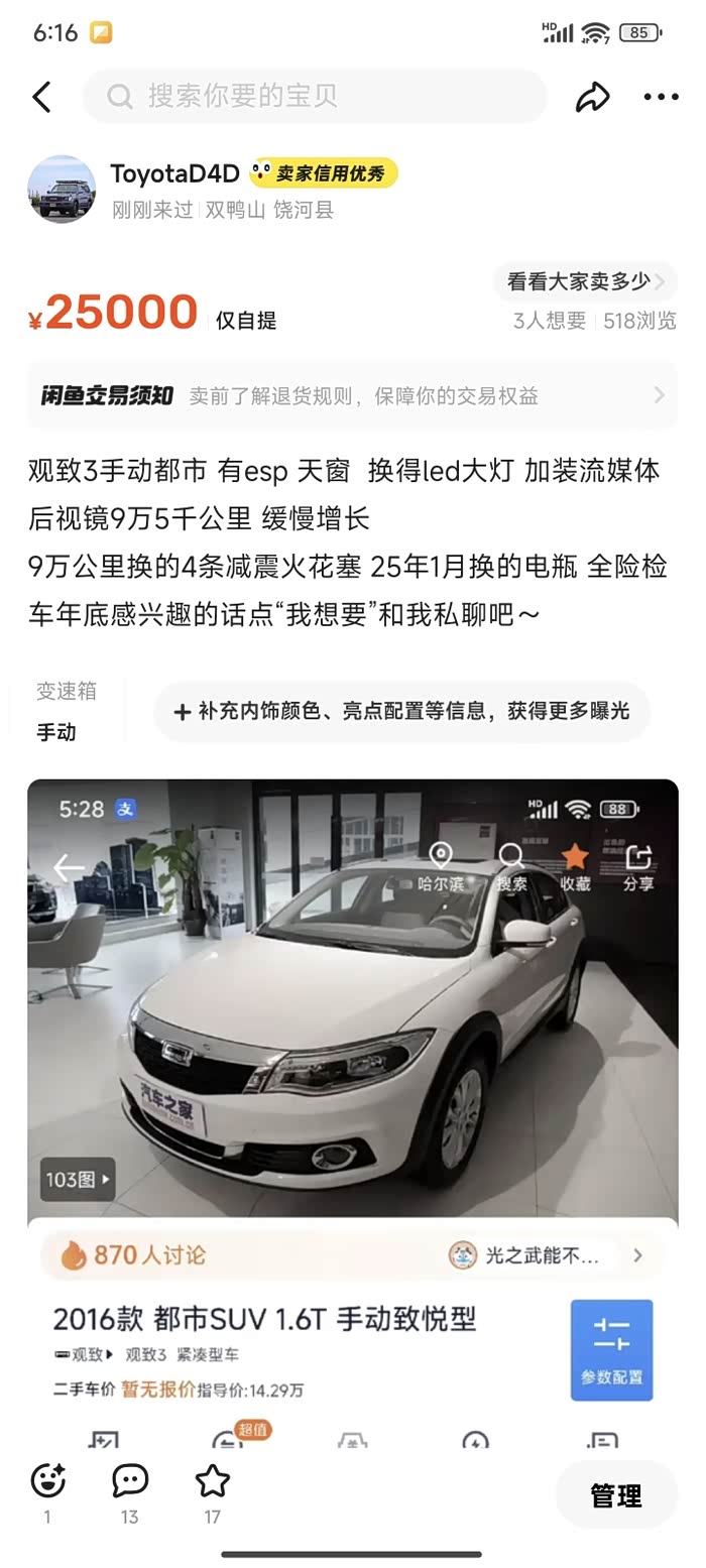 原来闲鱼黑龙江那个手动观3是你的啊,我还收藏了呢