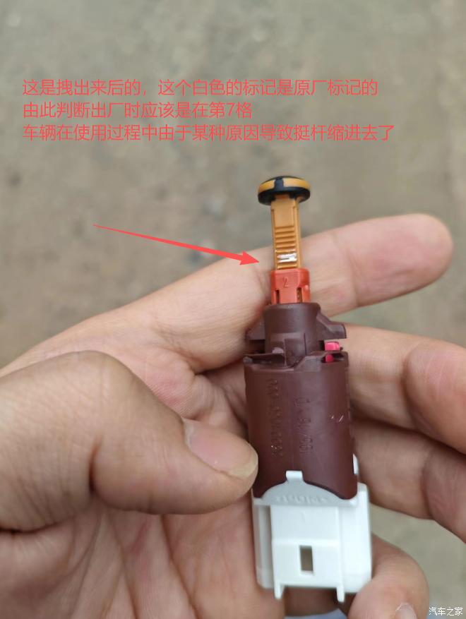 在拆卸时我发现传感器有四根线,这说明行车电脑可以通过这个感应器行程位置判断刹车踩了多少