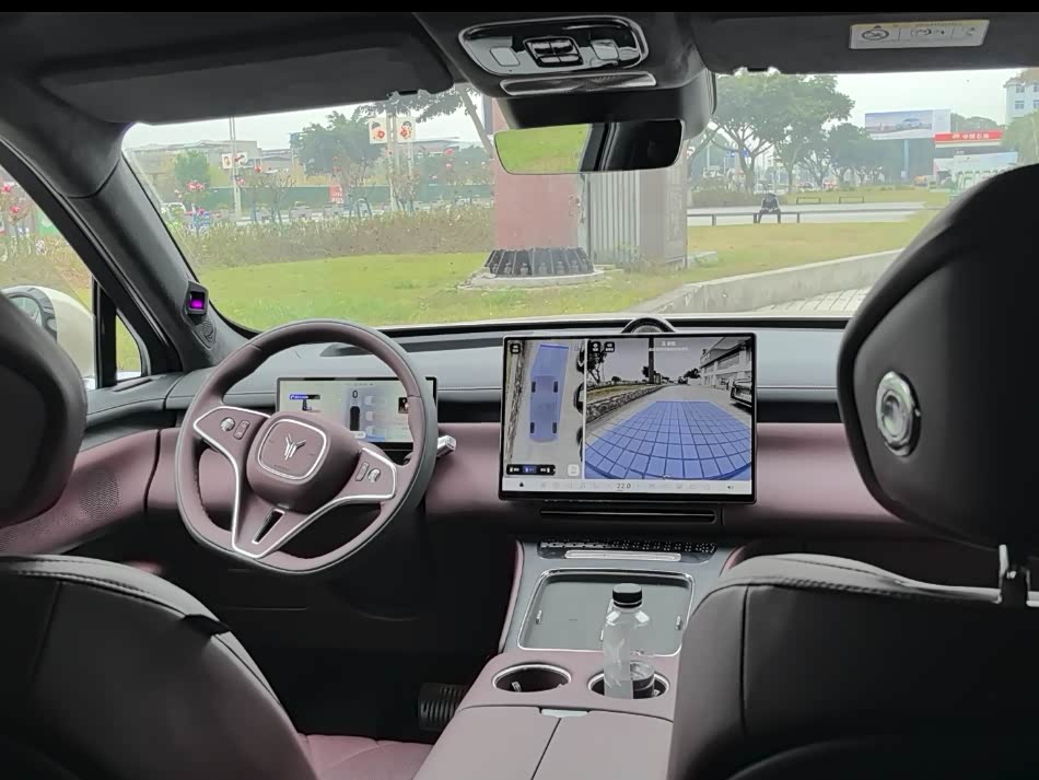 这时候我特意体验了一下泰山的三腔空气悬架,路过一些坑洼路面和减速带的时候,颠簸感被过滤得很彻底,坐在车里几乎感觉不到太大的震动,就像在平地上开一样,车内放的一杯水,只有轻微的晃动,不会洒出来。销售说这三腔空悬能通过两个刚度阀控制三个工作气室,实现四种刚度调节,能根据路况自动调整,兼顾舒适和支撑。反观极氪9X的闭式双腔空悬,虽然也能调节,但更偏向高速稳定性和侧倾抑制,过减速带的时候,会有一点多余的弹跳,舒适性不如泰山细腻。