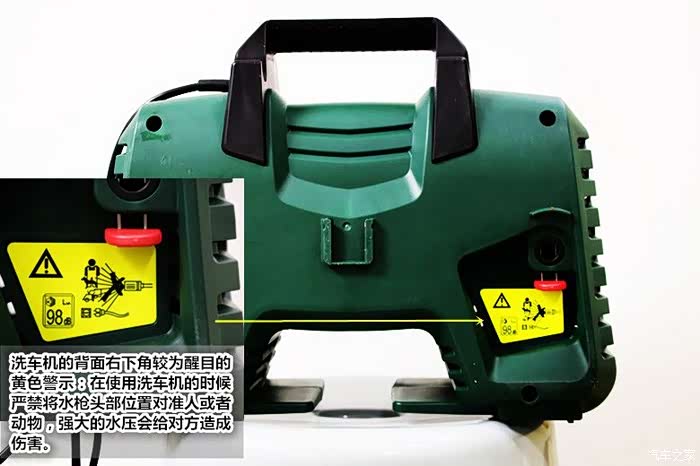 不足1.打开开关启动洗车机,电机工作的时候产生的震动音量较大,不过在室外工作可以接受,在