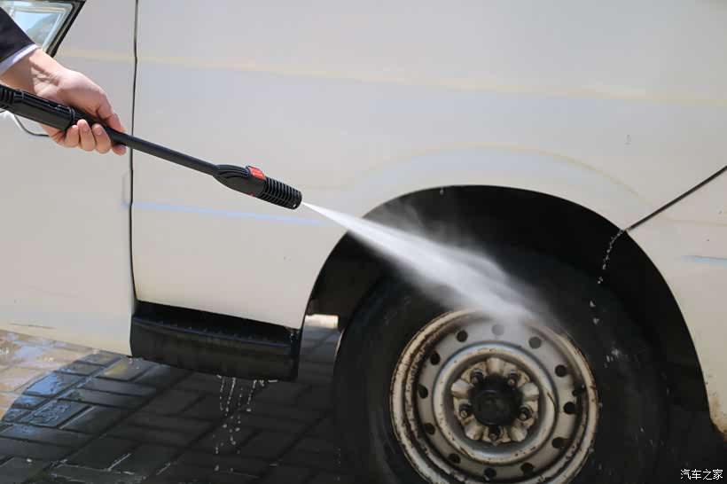 2.洗车机220V电压足够强劲,水压稳定且有劲,指哪打哪,两款旋转水流喷头足够洗车使用。