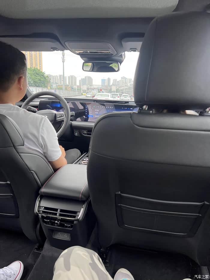 后排空间给人第一眼的感觉就是大,虽然中间地台有轻微凸起,但是基本上不影响乘员空间。前排按照我的驾驶习惯调整好后(身高175cm),后排腿部至少还有30cm以上的空间,头顶还有15cm左右的空间,即使长途旅行这空间也不会觉得拥挤。