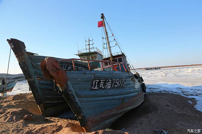 由于地处沿海,这里的气温明显高于其它地方。从沈阳出来一路都是冰雪的世界,快接近大连地区便鲜见冰雪了。只是透过车窗,才看见前方白茫茫的一片——那里就是依然一望无尽、却被冰雪覆盖的大海了。