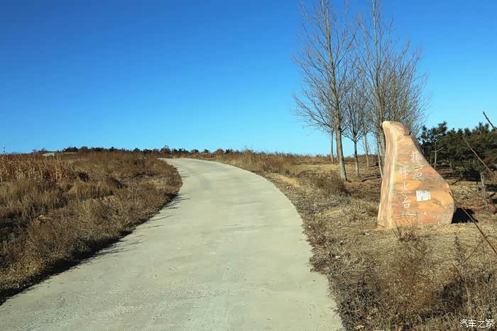 路口一块大石头上写有“排石烽火台”几个字,这也是骆驼山海滨森林公园的一部分。原来,在排石村北山上有一个明代烽火台遗址,西、北、南3面临海,当年也是十分显要。只是我们到达海边后,太流连于冰封的海景,而无暇登上山巅前去瞻仰。