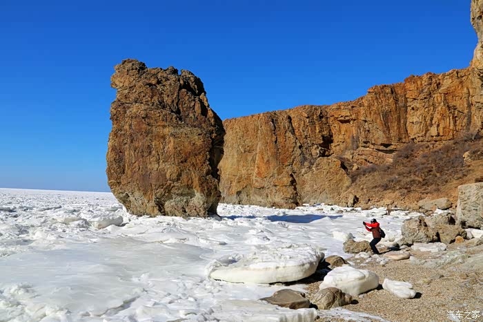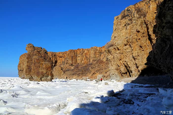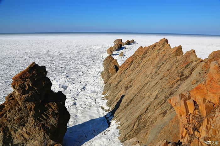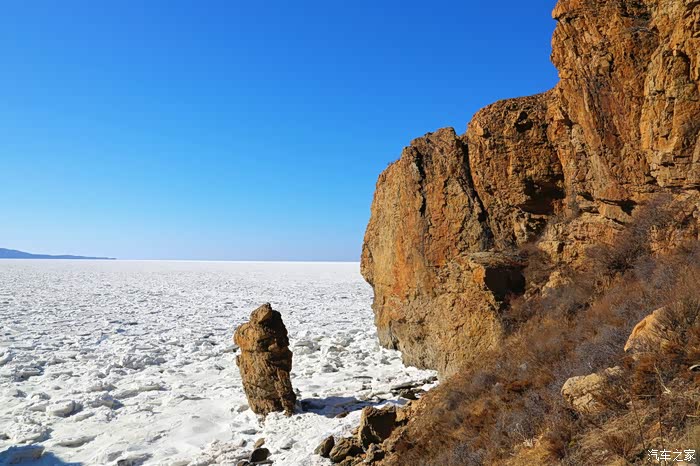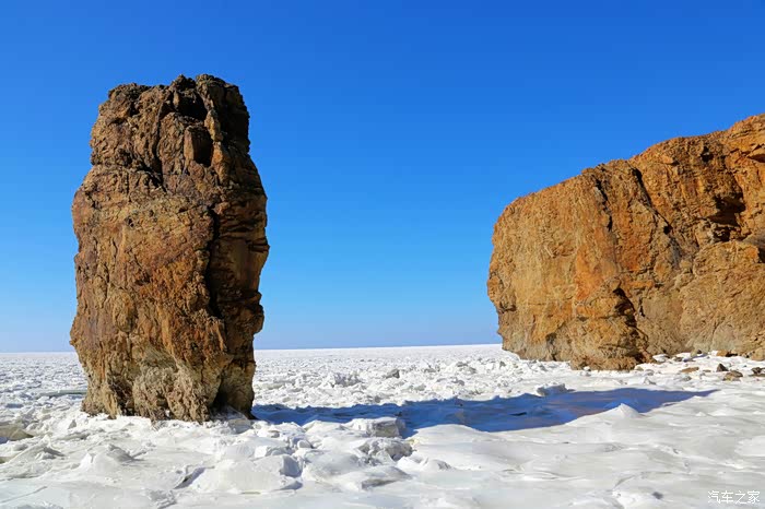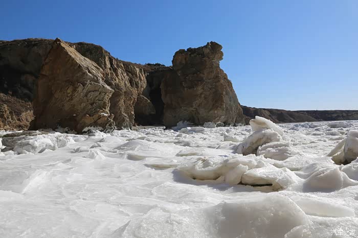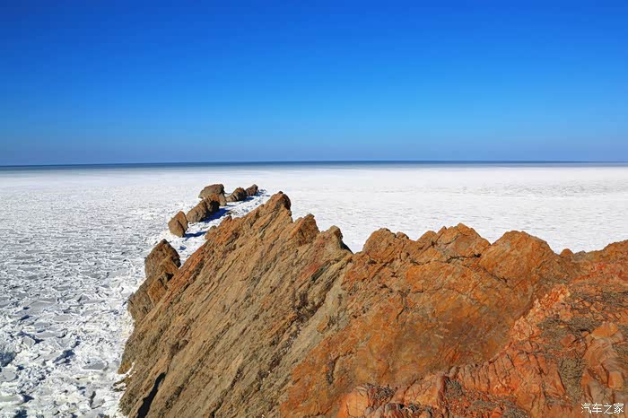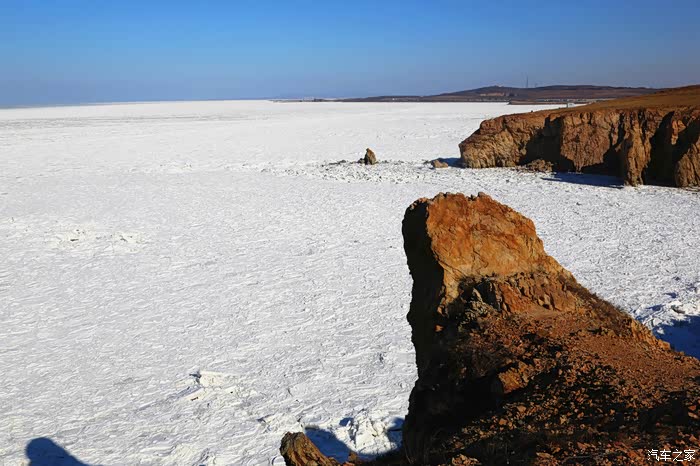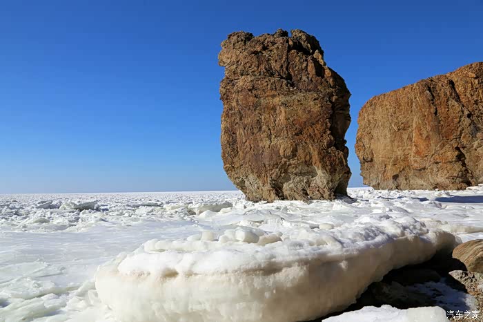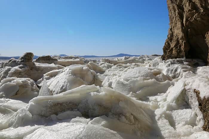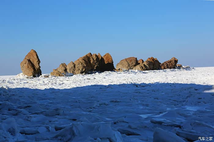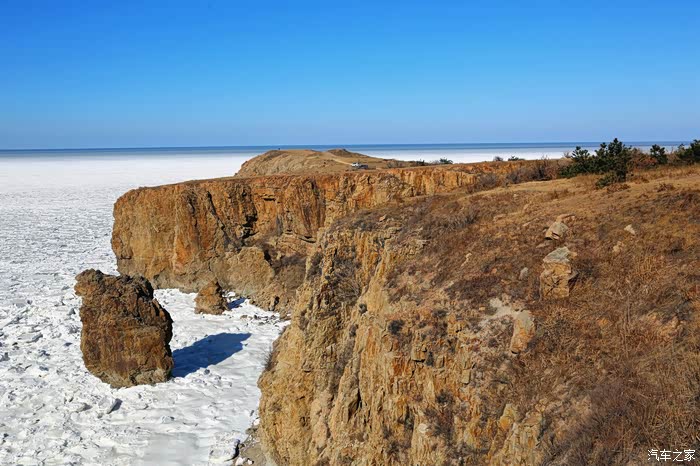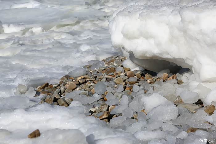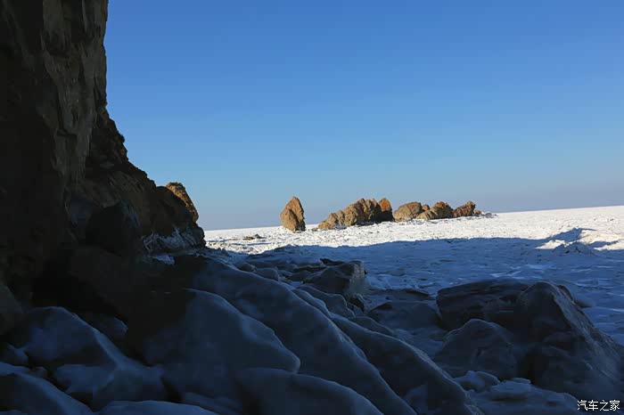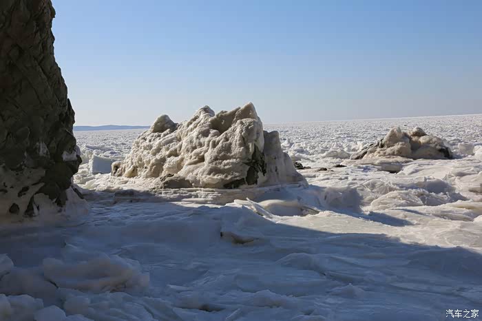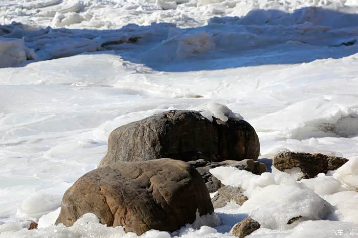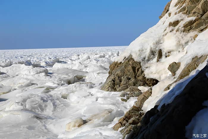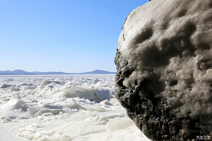 但车拐过弯来,前方白色的海面又实实在在地提示我们还身处在严寒的冬季。