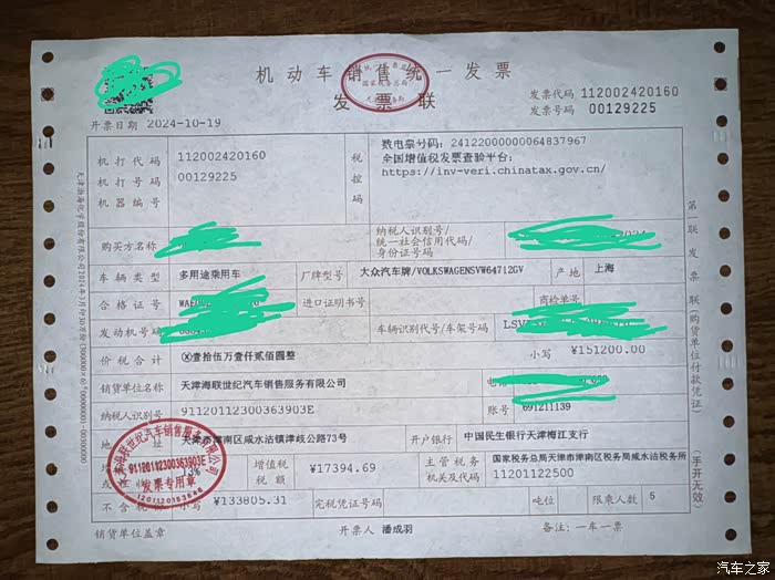 画重点:全车玻璃日期,轮胎日期,都要早于汽车出厂日期,发现问题当场解决,避免离店后产生纠纷。最后确认无误后交钱,当从销售手中接过两把钥匙时候非常开心,很有成就感。