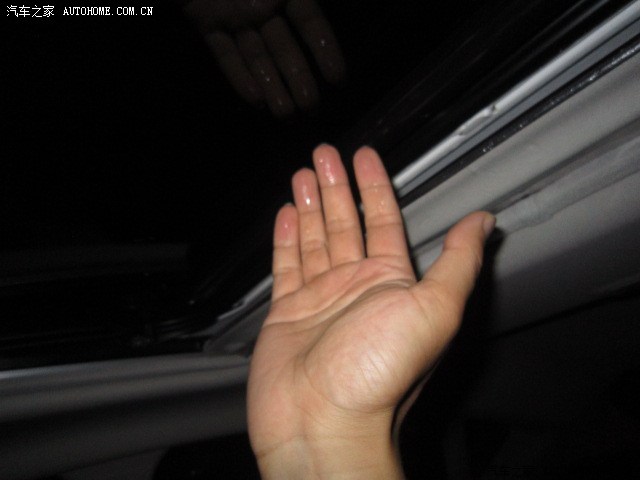 晚上又是一场大雨,意外发现了天窗后沿漏水,位置就是天窗玻璃密封条与车顶接触的部位,副驾驶位置上方厉害一点,大概半分钟到1分钟能形成1滴水,在雨大的时候。