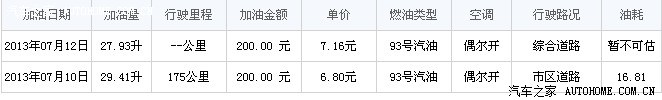 第一箱油耗出来了,用汽车之家网站里的油耗计算器算的。没有加满油跑,都是加200元,第一次加油在私营加油站便宜,第二次在中石化加的,刚刚警告油量低。