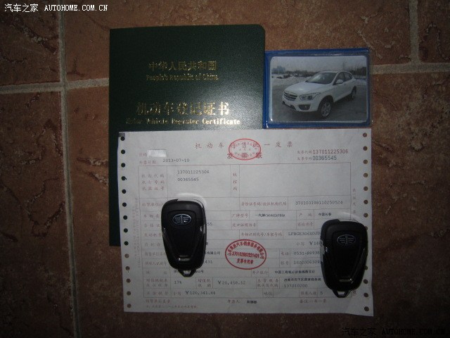既然是认证帖,那就上我车的发票跟钥匙还有车辆登记证、行驶证