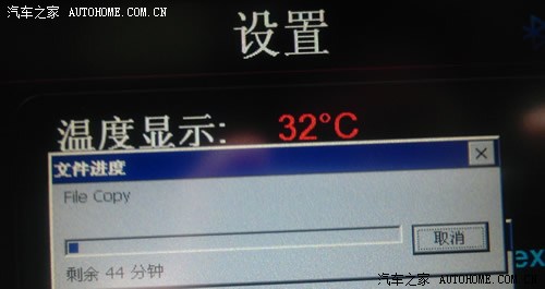 3.复制大概40分钟,中途不要断电(可以打火扭钥匙,千万不要挂倒档。复制过程中,画面定格其他按钮不能使用)