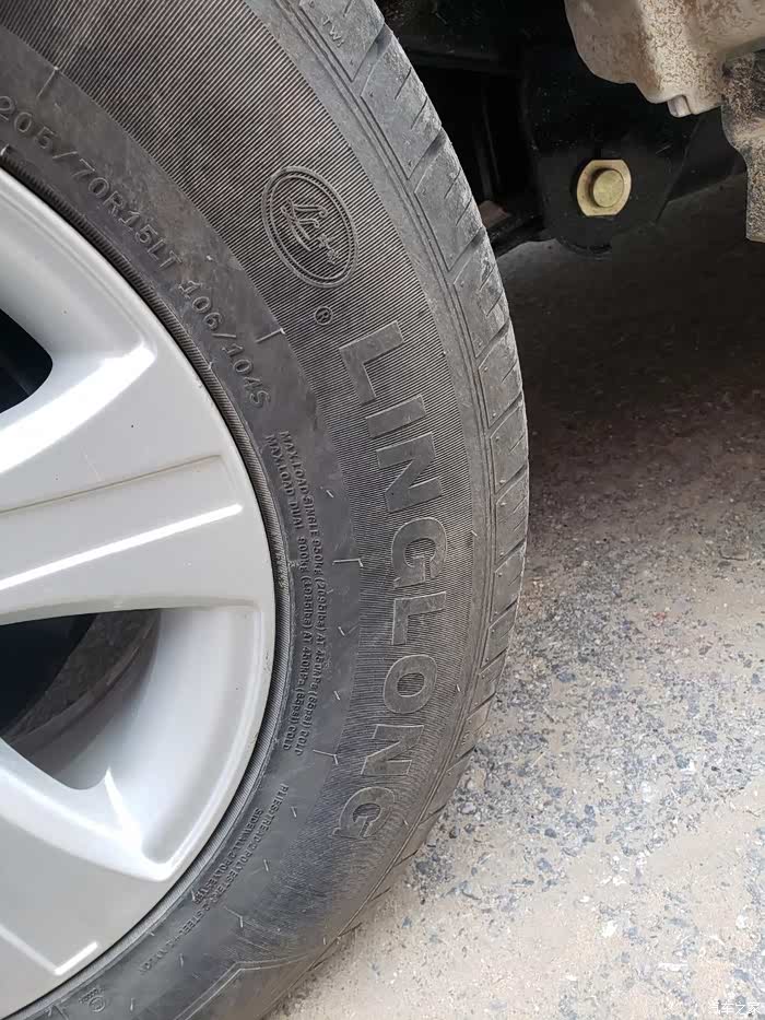 207/70 R15,15寸铝合金轮圈,看了也很大气,玲珑轮胎,宽度205mm,19款185,195轮胎,点个赞。路上跑起来很稳。就是胎噪很大,很清晰传到驾驶舱内。