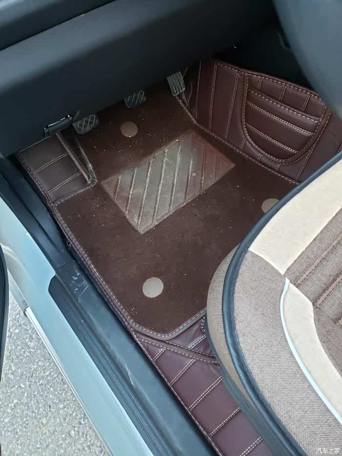 车子坐垫原厂是PU皮的,应该就是革吧,自己增加了全车布坐垫,保护车座,布坐垫夏天不烫屁股,冬天不冰,颜色选了自己觉得喜欢的颜色。脚垫也是棕色的,以免车内弄得很脏。