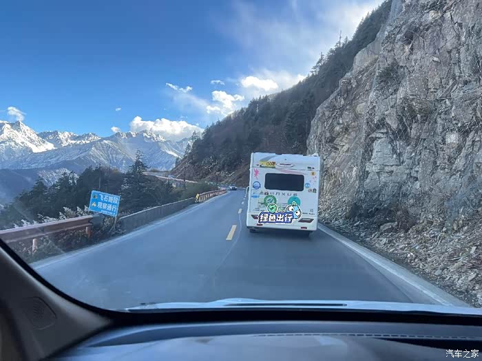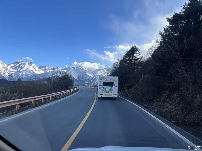 从映秀开始走熊猫大道直奔四姑娘山,我是真没想到随着海拔渐渐升高,景色越来越壮观,丫头说:看雪山!雪山连着雪山,我们盘山越开越高,似乎要和雪山山顶一样高了!车友T的B型车比较溜,总是第一个到达观景点等我们,远眺四姑娘山…从惊喜到惊呼…直至看雪山到麻木…房车奔驰在熊猫大道上,感谢车友K给我和车友T拍了那么多房车美照!…不虚此行