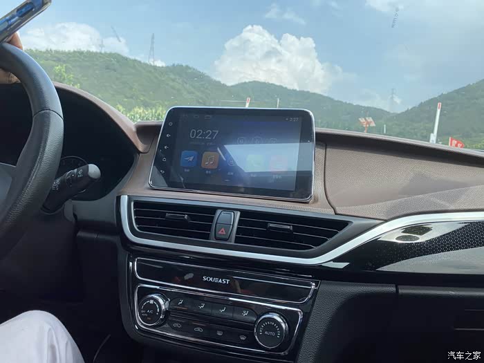 前几天连续下雨,今天蓝天白云和画里的场景似的。小舞的中控部门是黑色和棕色搭配的,当时买车就这么一种颜色的内饰