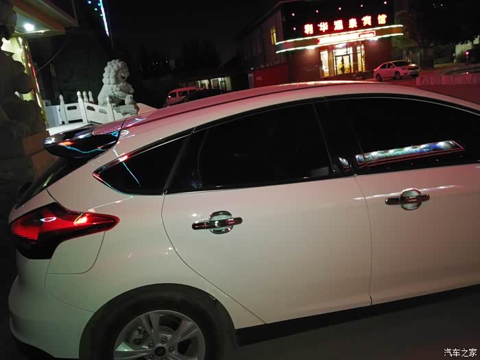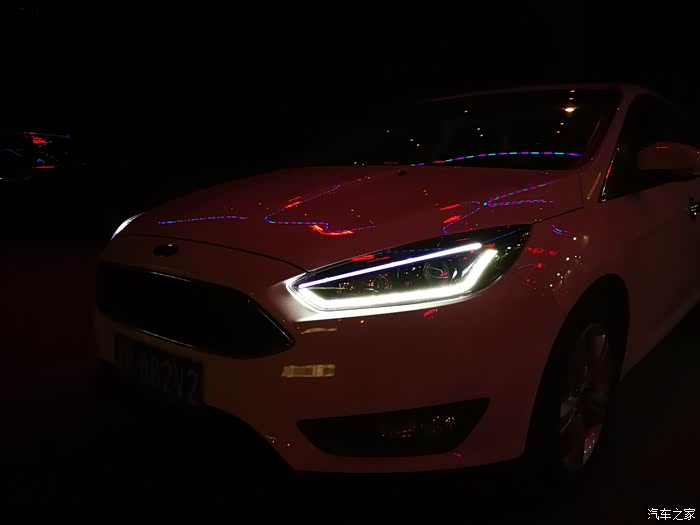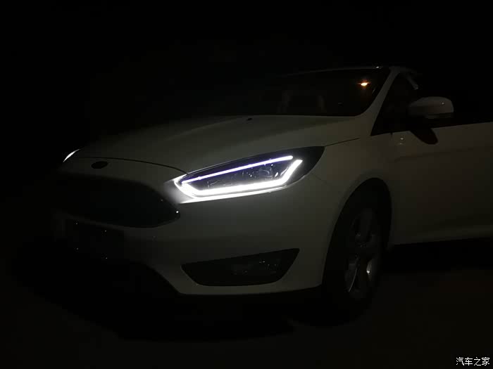 福克斯的大灯建议有条件还是要改的。还是淘宝货,直接换了总成,汽车节买的,优惠完2500。确实炫酷,双透镜,近光灯氙气,LED日间行车灯,流光转向灯很漂亮,不能拍照。大灯很亮。不过注意行车文明合理使用大灯。