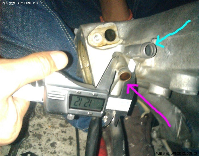 看到两个孔的颜色不同了么?——没错,紫色来自PCV废气,青色则连接树杈阀为刹车提供真空