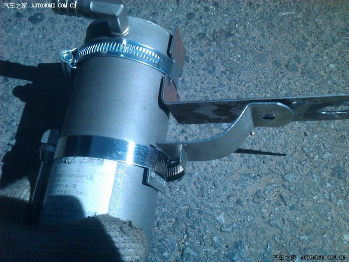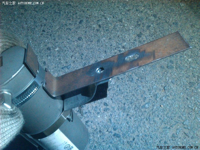 下面短的原本就有孔,以此孔作为参照点,在长铁条上钻眼。后面的那个眼,则比照车架ABS固定结构。