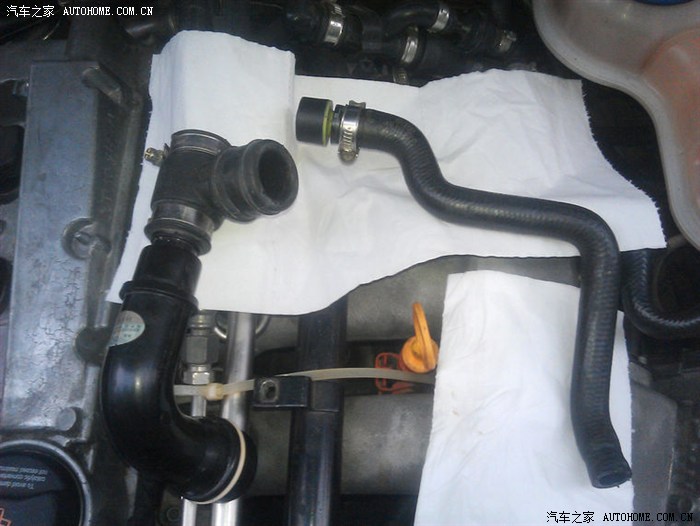 本次方案,我们要做的就是将原车的进歧管替换成透气壶。图中,短的就是原车的,长的是后配的管子,做一个比照。
