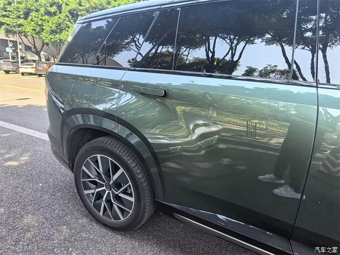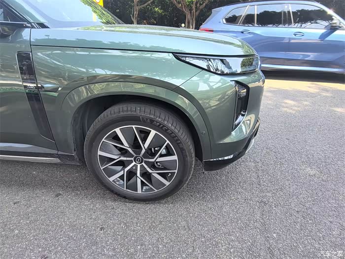 侧面线条流畅,隐藏式门把手降低风阻,解锁时自动弹出,仪式感拉满。轮毂是20英寸的,搭配米其林静音胎,跑起来又稳又安静。
