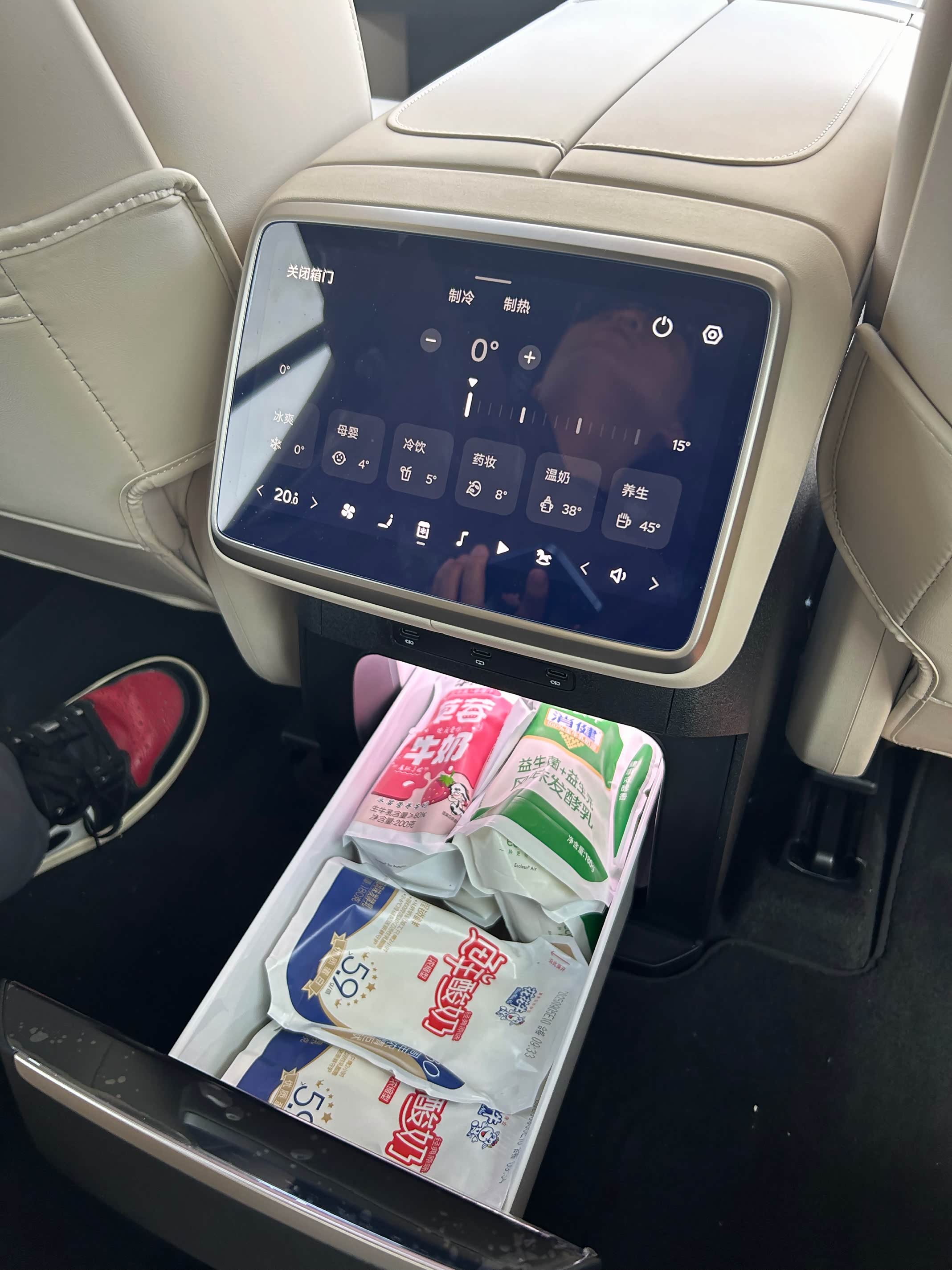 5.车机:能随便更改唤醒的名字,流畅性的回答各种行驶问题,一下子下好几个指令也可以,前排屏幕能操作全车所有的功能,后排娱乐屏幕看电视,下边冰箱屏幕也能操作基本的功能。