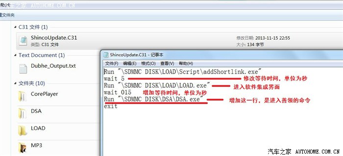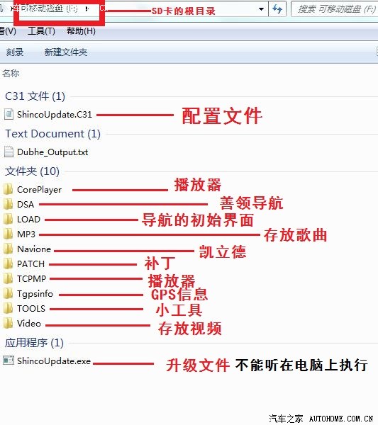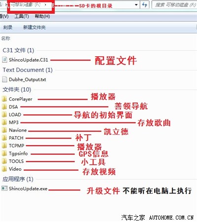 改两文件:一个是SD卡根目录下的ShincoUpdate.c31,作用是点火后自动启动善领导航