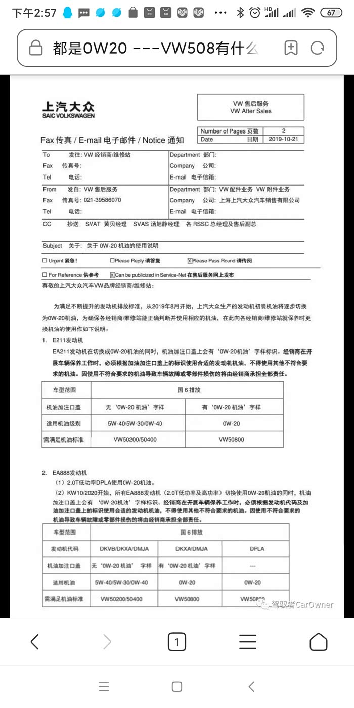 我的车是VS5自动,2020年7月份出厂,应该是国六B标准,看车主手册说是0W-20机油,508标准认证,与以前的经验用30/40的不符,所以才发问