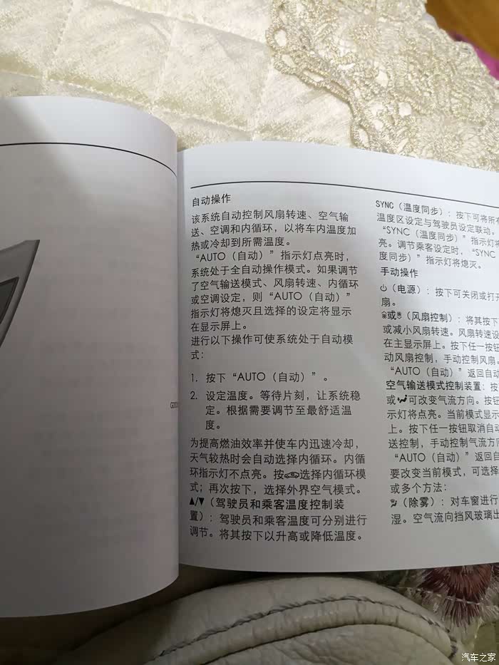 自动空调。。风量太大了。。。如果不是车里热爆了,我基本进去风量调最小多一档就够了,风就挺大挺凉了。。看来大功率发动机带压缩机还是很给力啊。。