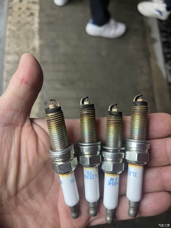 在一旁边看边与技师闲聊,提及这铱铂金的火花塞时,技师说通常可以5~6W公里换,但看到从凡尔赛上拆下的某支火花塞后,说应该换了,再不换,点火线圈可能会受损。
