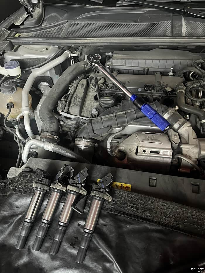 在车旁看了拆装的全过程,比高尔夫6更换起来简单的多。不需要专用拉拔工具,徒手就可以取出点火线圈,卸去插头也十分方便,还没有复杂的排线羁绊。心想下次自己更换应该不难。