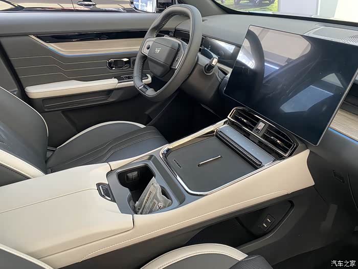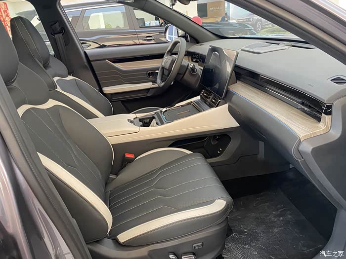 内饰有9.2英寸液晶仪表、多功能方向盘 ,分别配备12.8英寸或15.6英寸中控屏,支持手机互联映射与OTA升级,还搭载8155高通骁龙芯片、AI语音助手,拥有L2级智能驾驶辅助、540°全景影像、索尼9扬声器音响等。