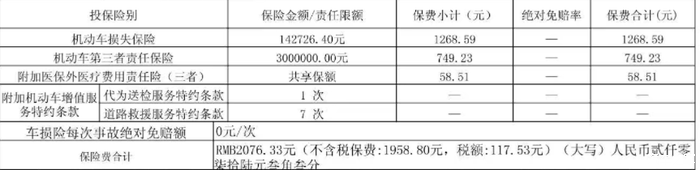 刚好我一个朋友的老婆也在做车险,也帮我做了几个车险的方案,但其实最终的价格,和我之前保险公司的第1次报价基本上差不多。我的保单内容包括车损险、300万的第三者责任险、车上人员责任险以及多买的一个医保外医疗费用责任险,再加上交强险和车船税,总费用是3692.14,我个人感觉这样的保险费用还是偏高了。