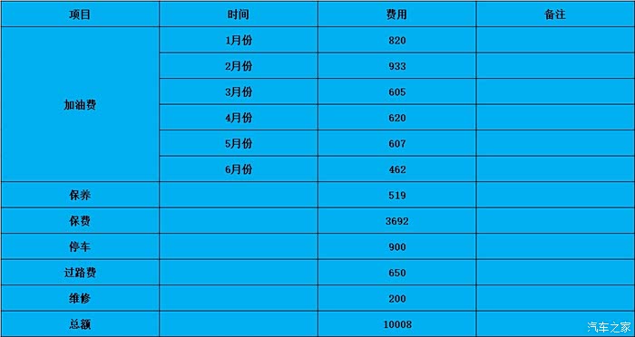 整个2003年的上半年,我的总体养车费用居然达到了1万块,当然其中接近3700块的车险费用应该算全年的,大家的用车费用如何?欢迎在评论区留言讨论。
