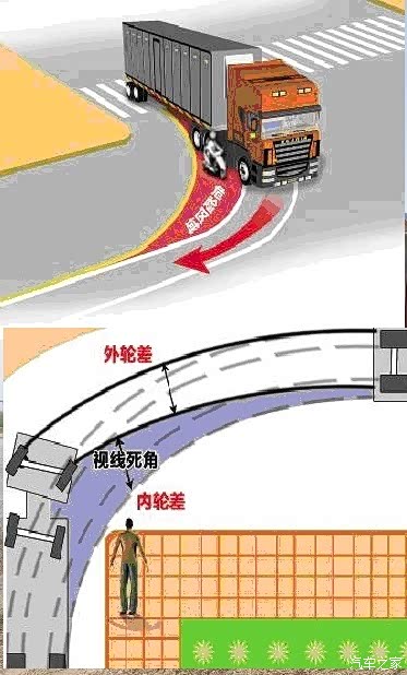之前有人发帖提到四驱的稳定性,而在我去4S看车的时候也遇到一个两驱MX6做保养,车主说建议我买四驱,说自己很后悔没上四驱,说看见人家四驱上马路牙子一下就上去了很羡慕……在此要特别强调:高速行驶不要用四驱!铺装路面不要用四驱!在此就不解读“差速锁”和“差速器”的区别了。大家都知道车辆拐弯的时候前后轮的行驶距离是不一样的,内外侧轮行驶距离也不一样,因为轨迹就不一样,骑过自行车的都知道自行车拐弯前后轮轨迹就是不一样的,最明显的就是大卡车的内轮差,图中的红色区域经常造成行人和电车甚至汽车被拖进去。