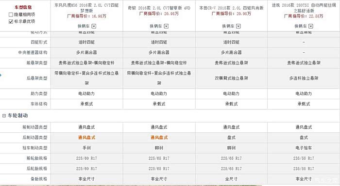 (3)也考虑过加钱买合资。新奇骏低配看了下,结果一分析,感觉发动机、变速箱、底盘和老款变化不大,只是做了小调整,低配的配置也不丰富,还是MX6划算;CRV底盘太低,买它不如买轿车或者跨界车了,价格也高,而且都烂大街了,不考虑。