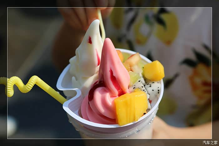 ▲▲成都当天气温显示28°,实际由于盆地的关系,体感温度比常州热多了,来上一杯水果冰淇淋,爽多了