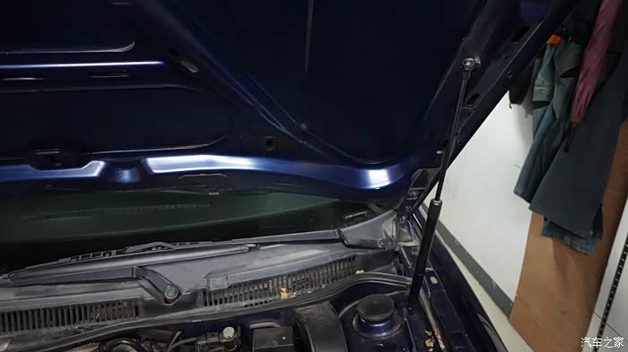 发动机舱盖带气撑,很方便。