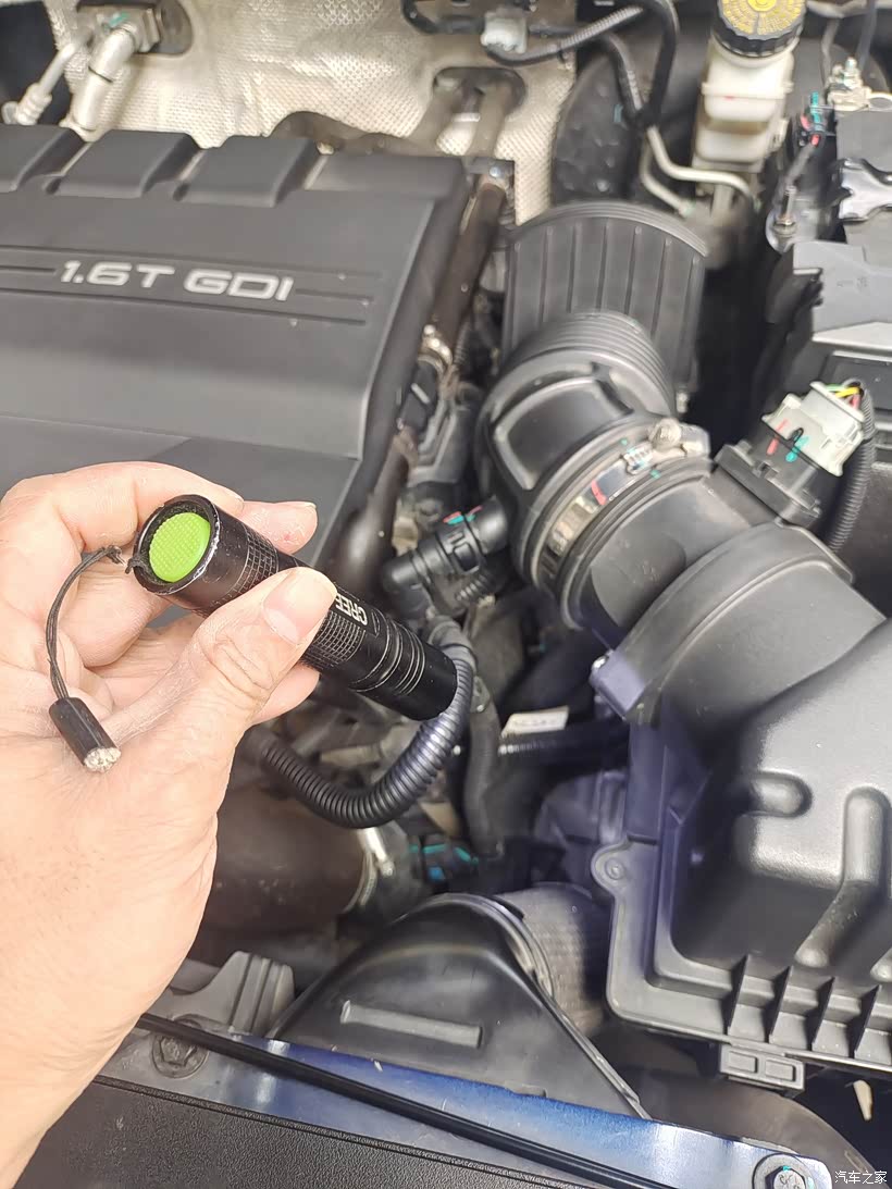 我用手电筒照着检查了1.6T GDI发动机周围的线束,涡轮增压器管路接口没有松动,线路绝缘层也没有老化开裂的迹象。顺便清理了机舱里堆积的灰尘和落叶,避免影响散热,从根源上减少短路风险。