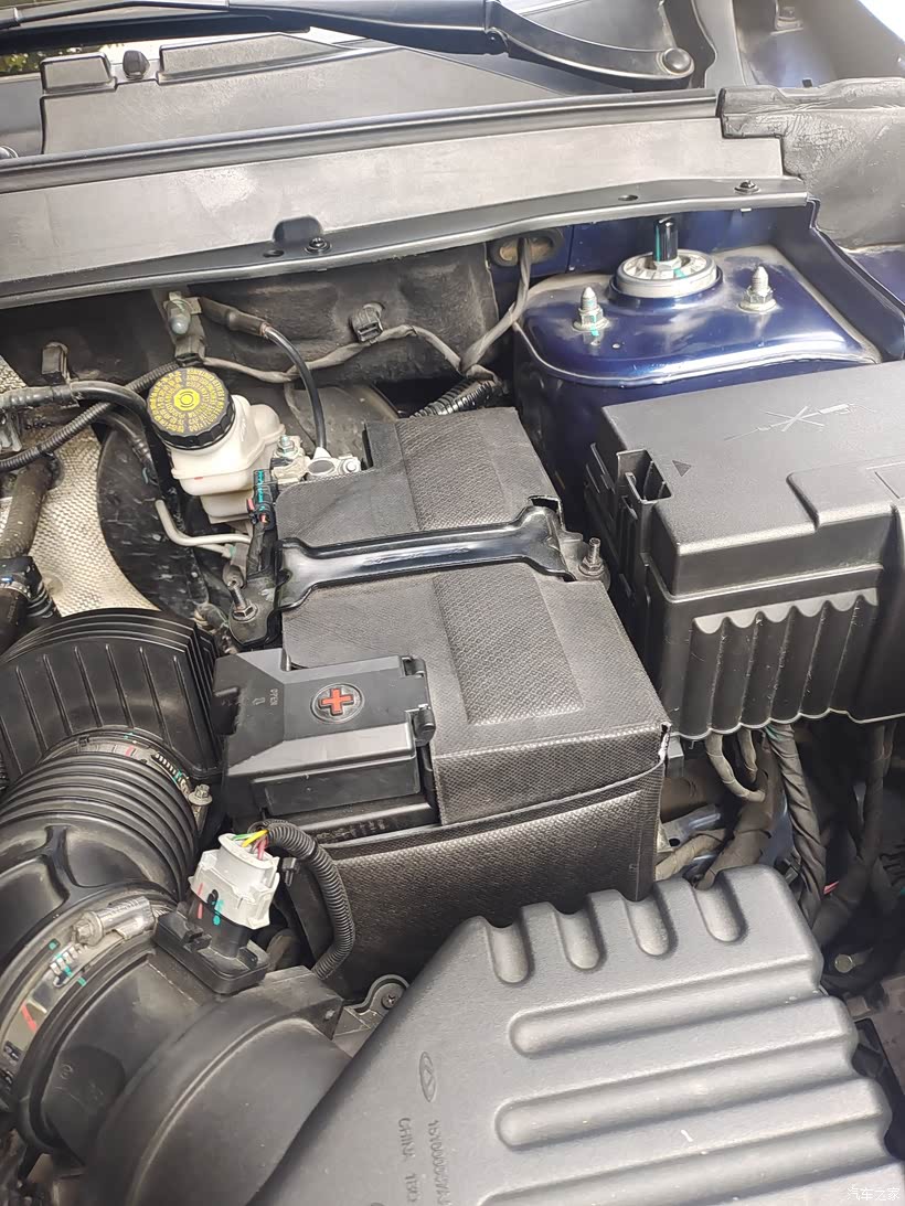 打开机舱就能看到右侧的电瓶,我的车已经用了4年,重点检查了正负极接线柱,没有松动和氧化发白的痕迹。冷车启动时仪表盘灯光稳定、马达转速有力,说明电量充足。如果你的车电瓶超过3年,建议提前去店里测一下电量以及健康度,避免半路“趴窝”。